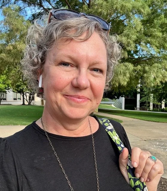 Laurie Biggs Marshall is a native of NW Arkansas, a menopausal graduate student, and a writer and artist. She’s also a mom, a grandmother, a lover of roaming road trips, and has too many hobbies.