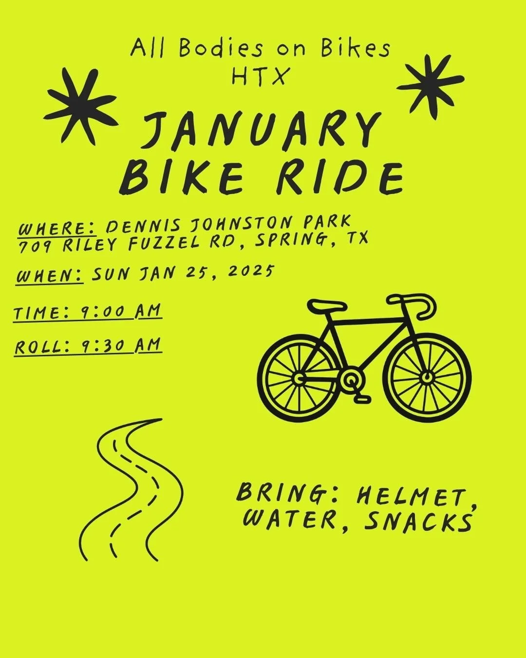 Meet Up Location: Dennis Johnston park, 709 Riley Fuzzel Rd, Spring, TX 77373